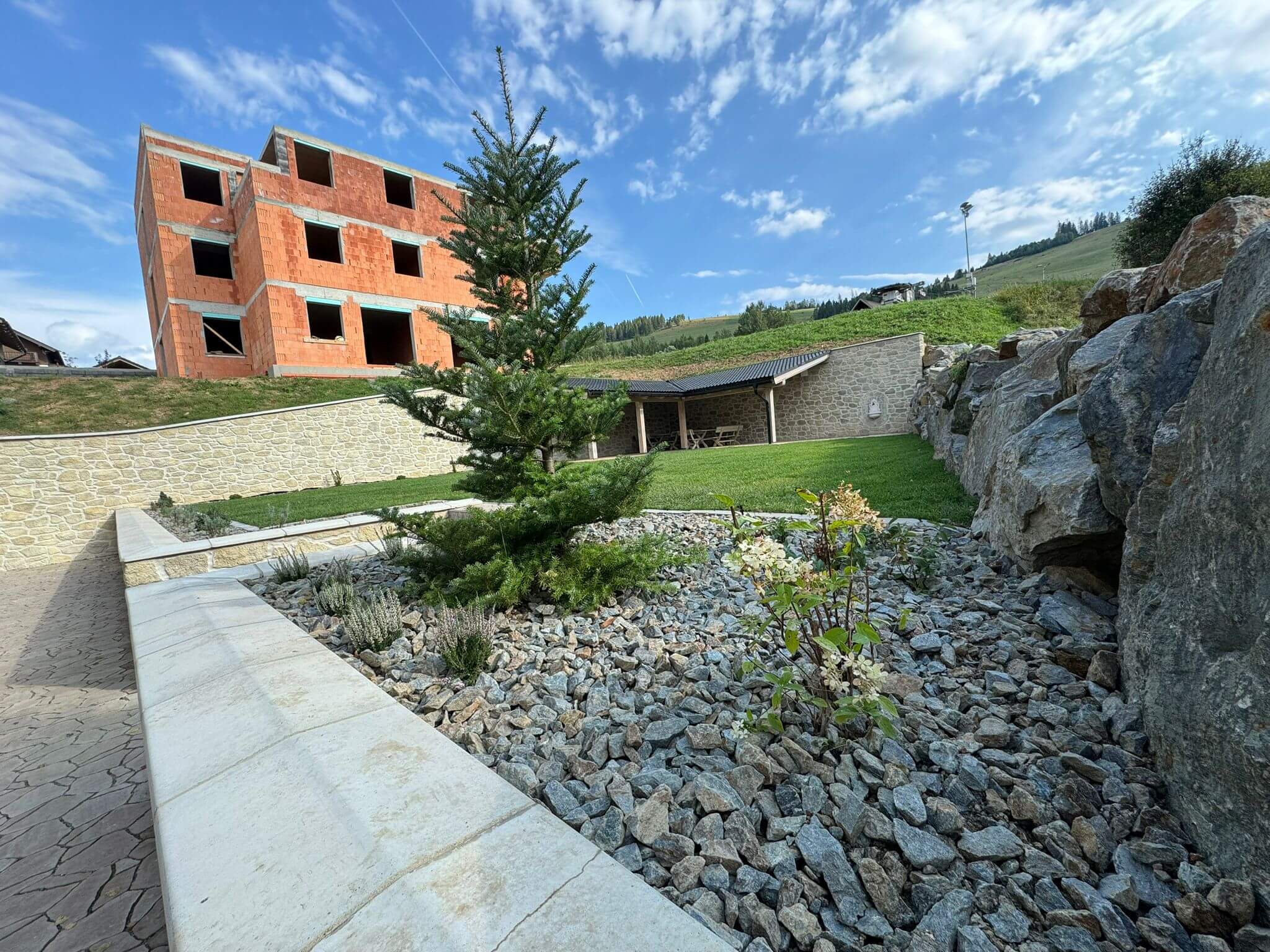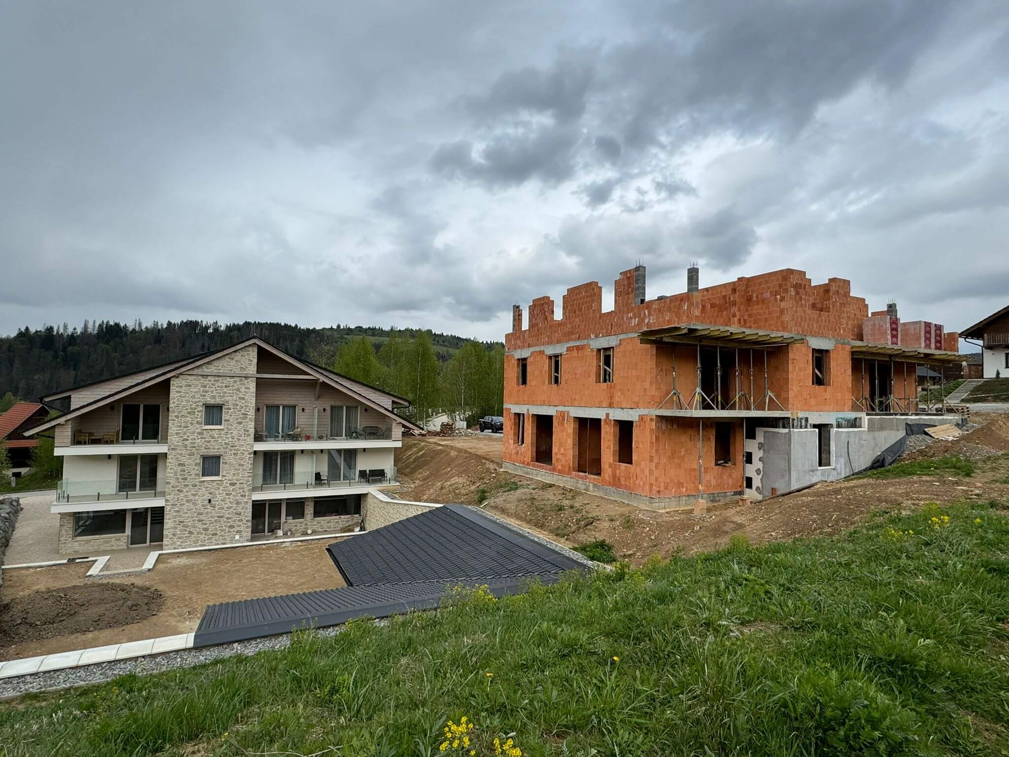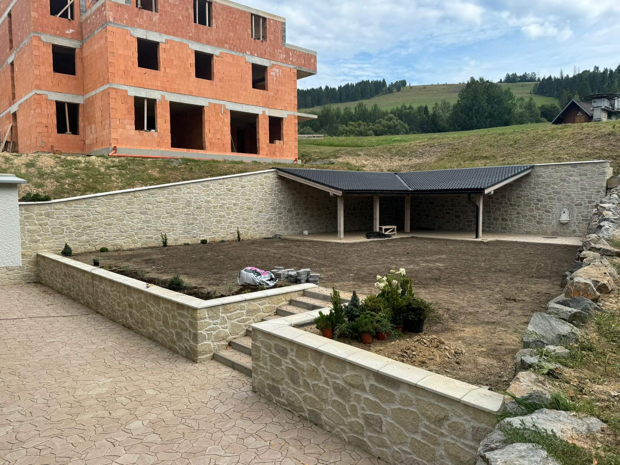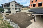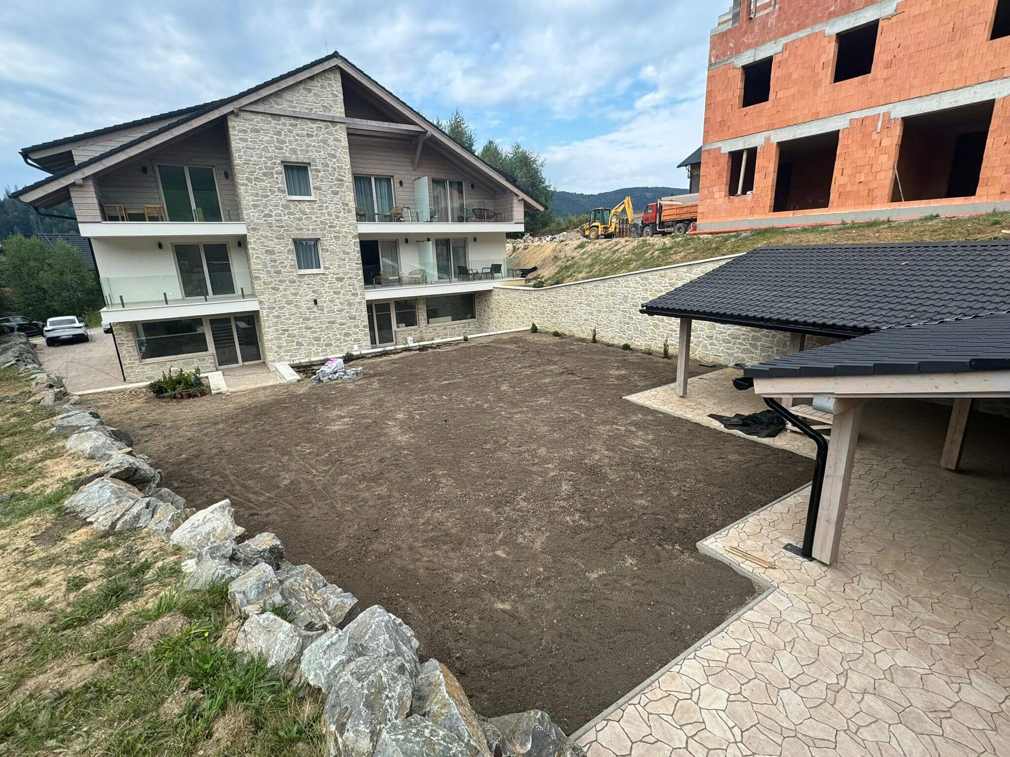Finálne úpravy okolo apartmánového domu
