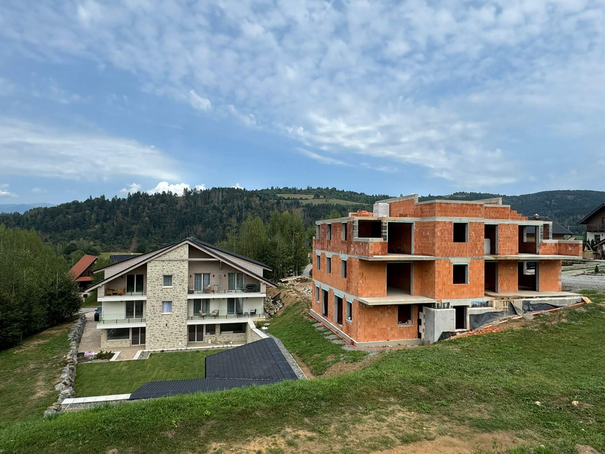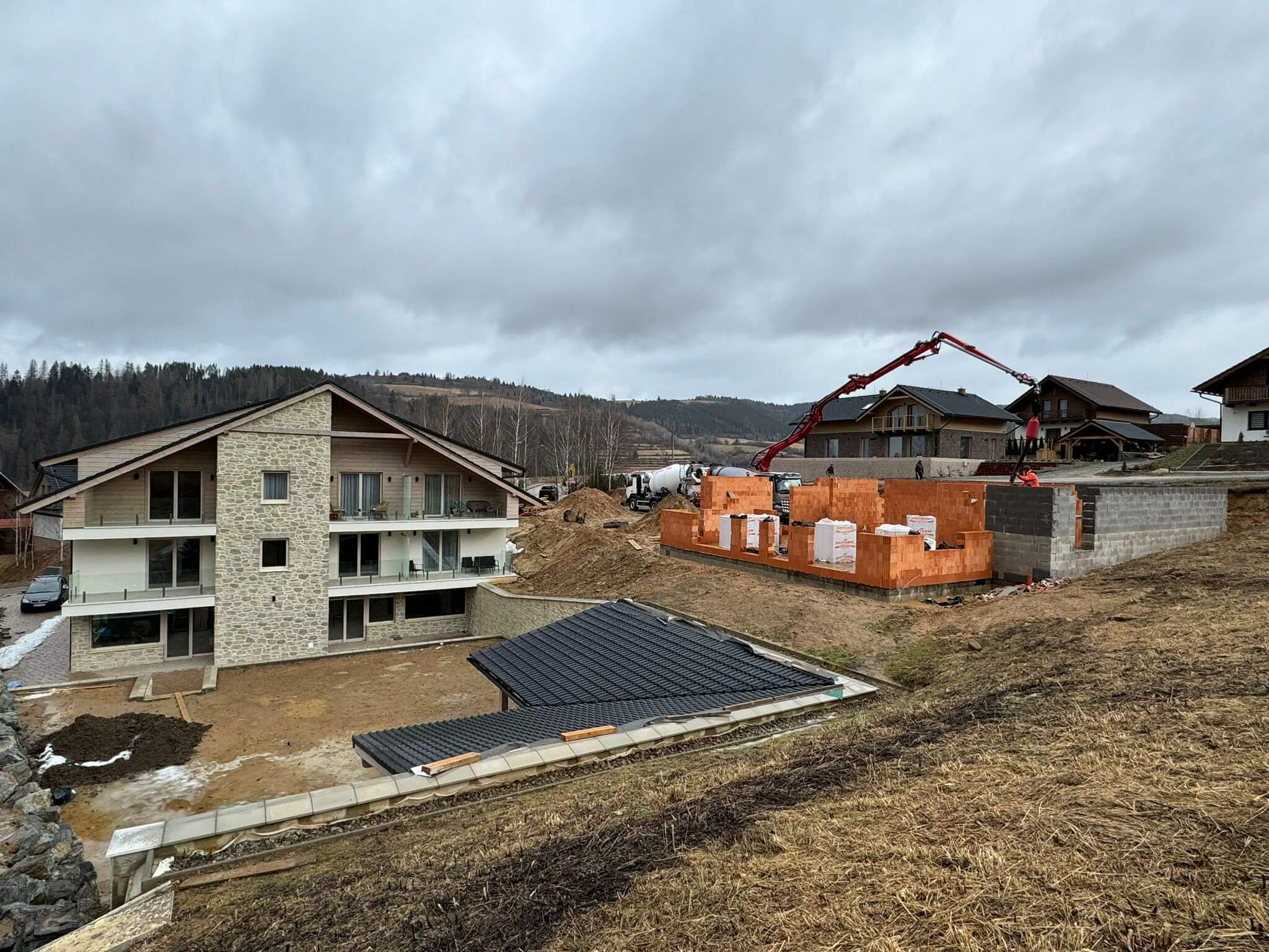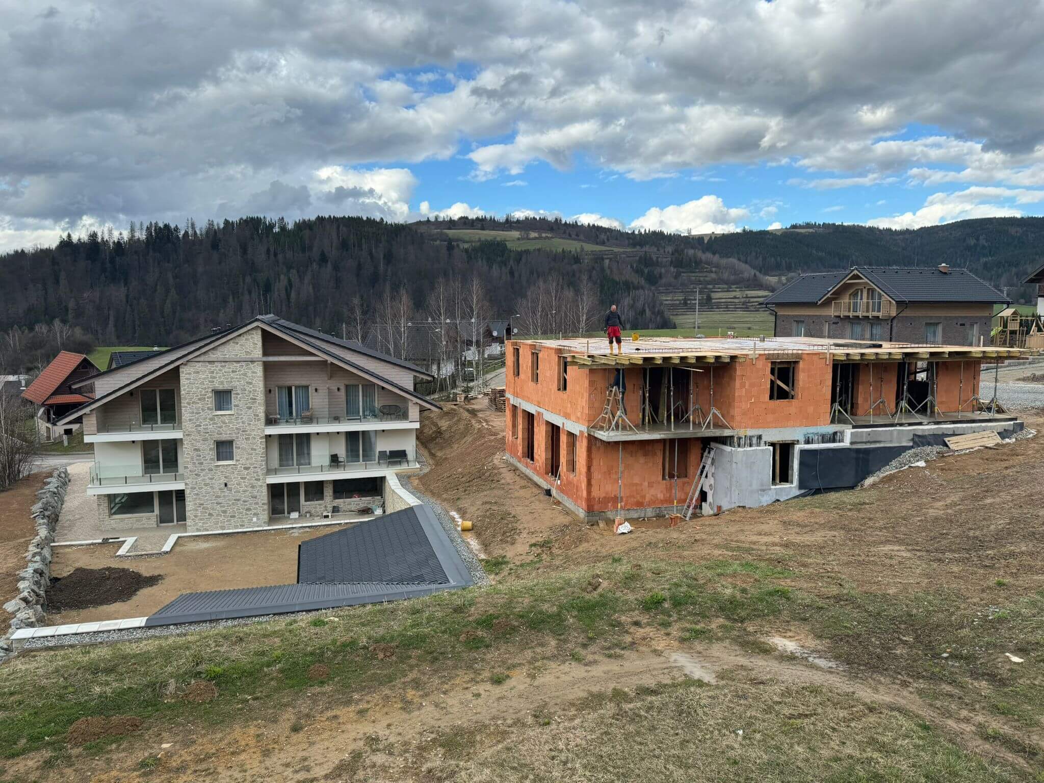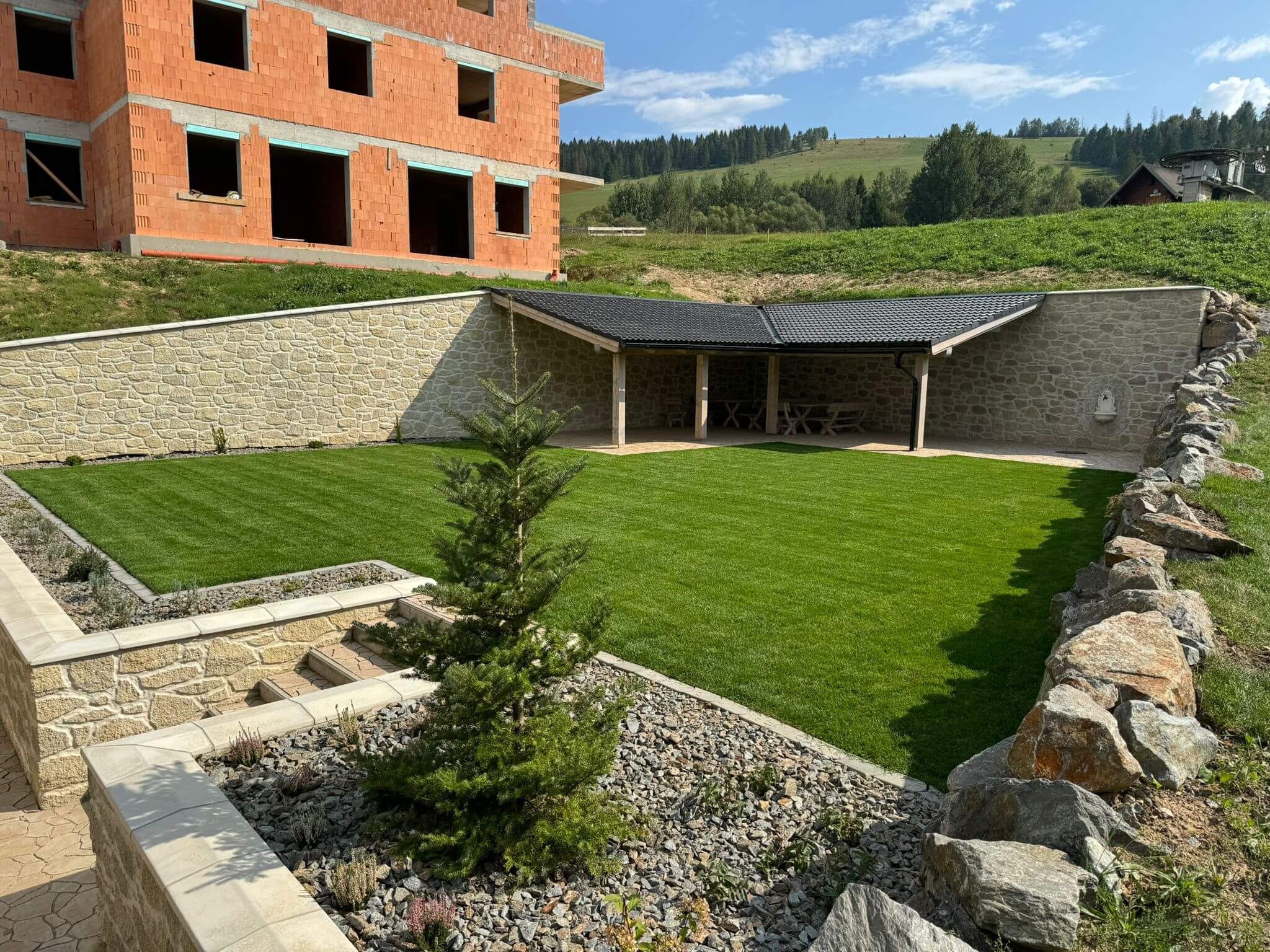 Finálne úpravy okolo apartmánového domu