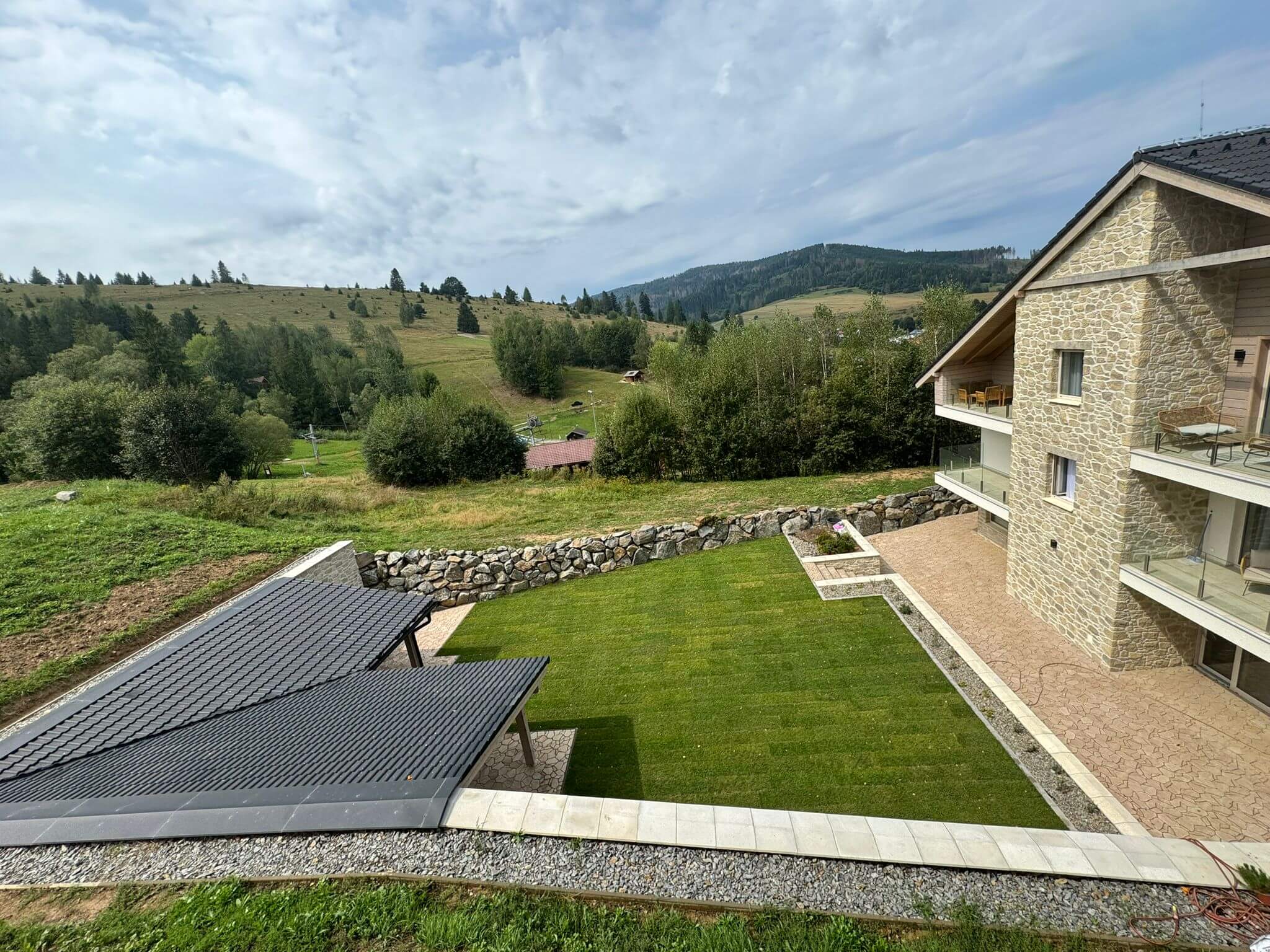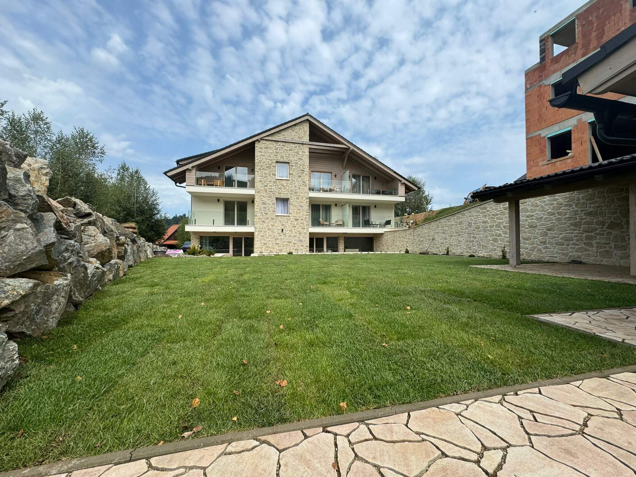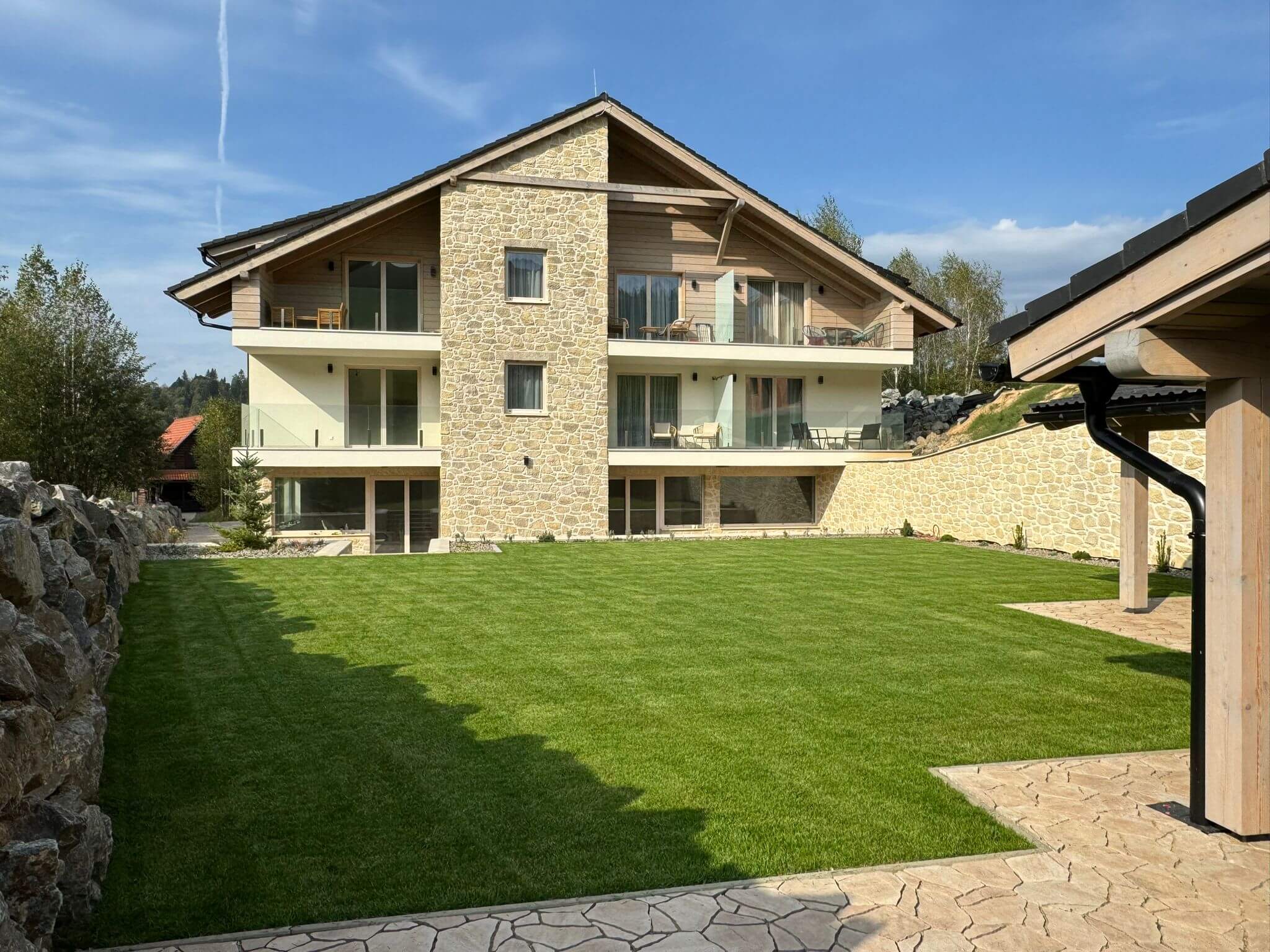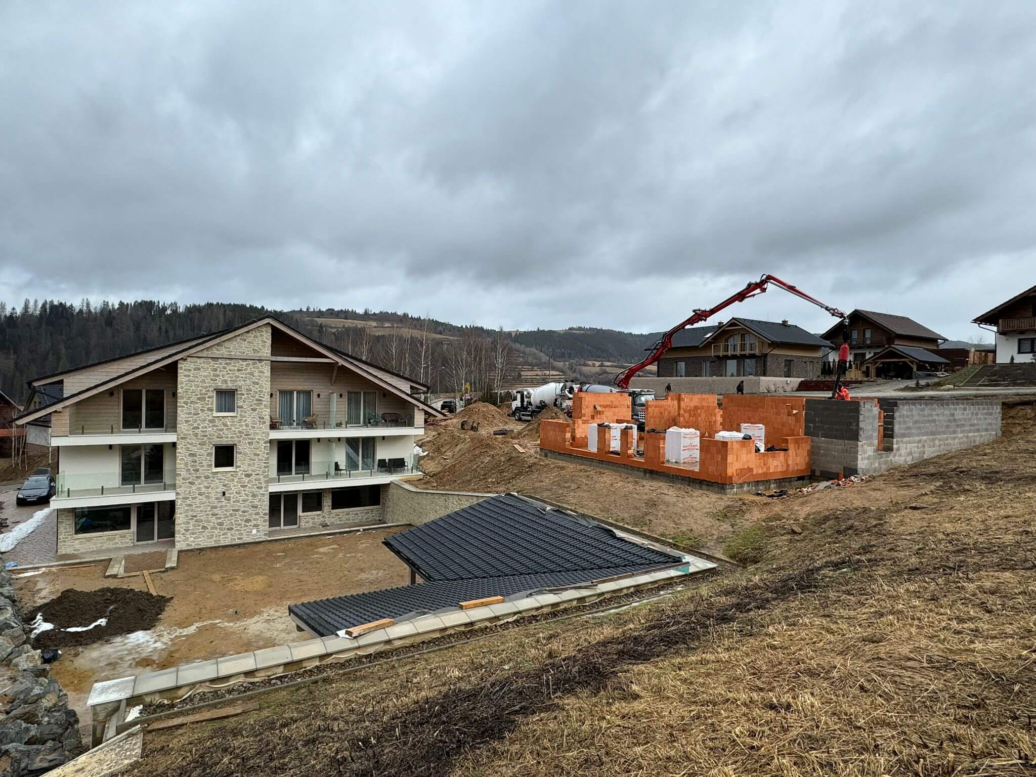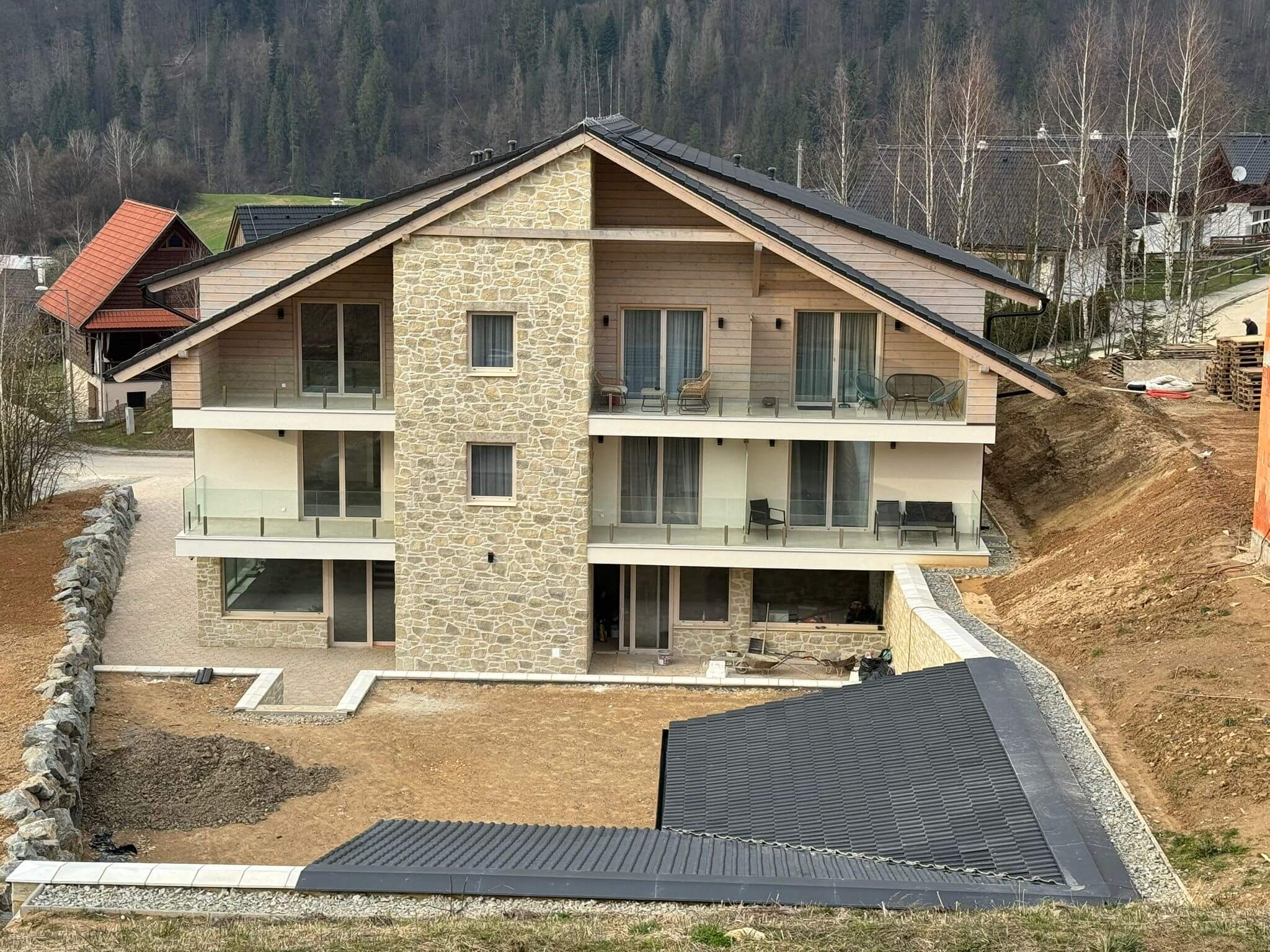 Finálne úpravy okolo apartmánového domu