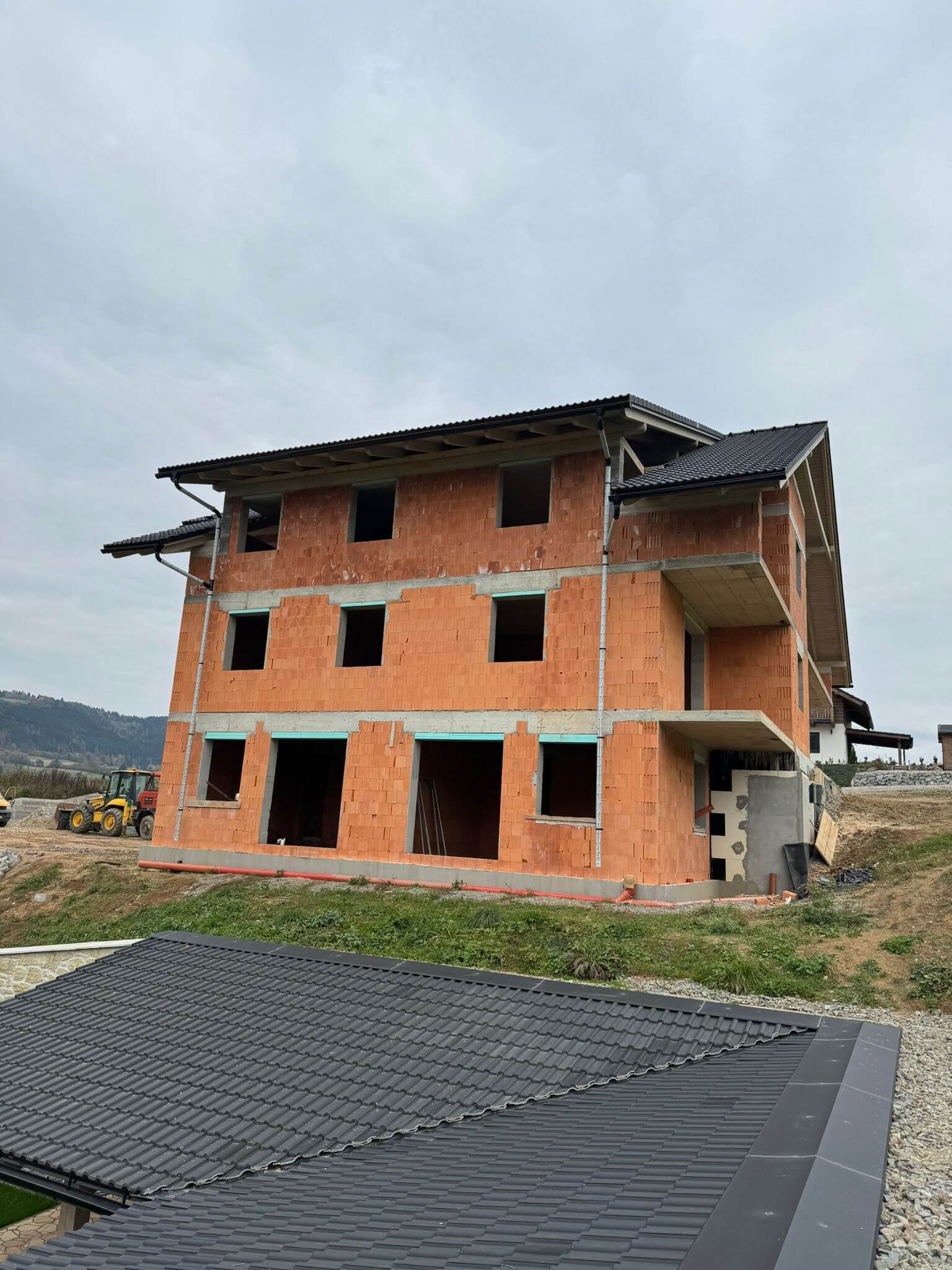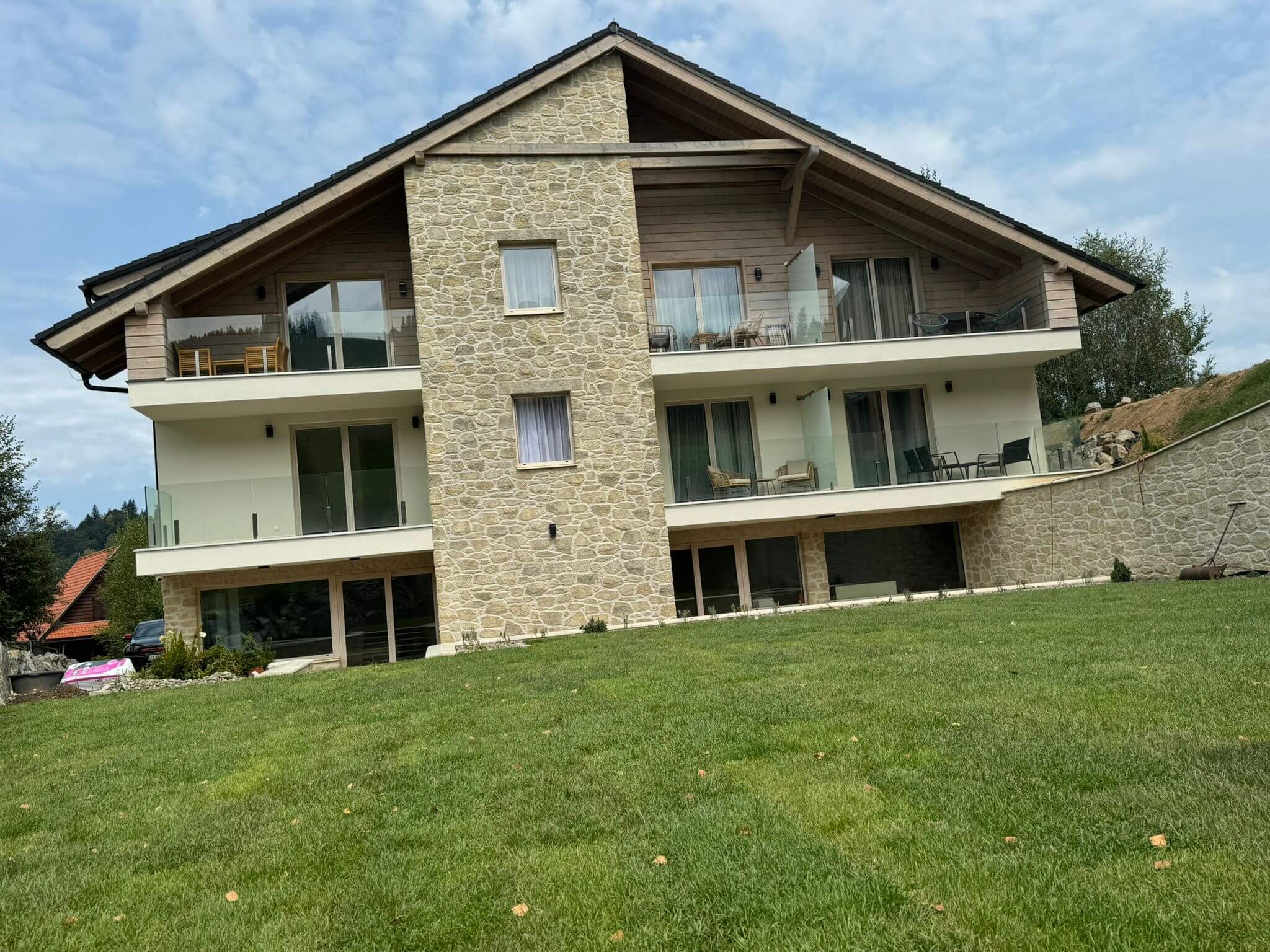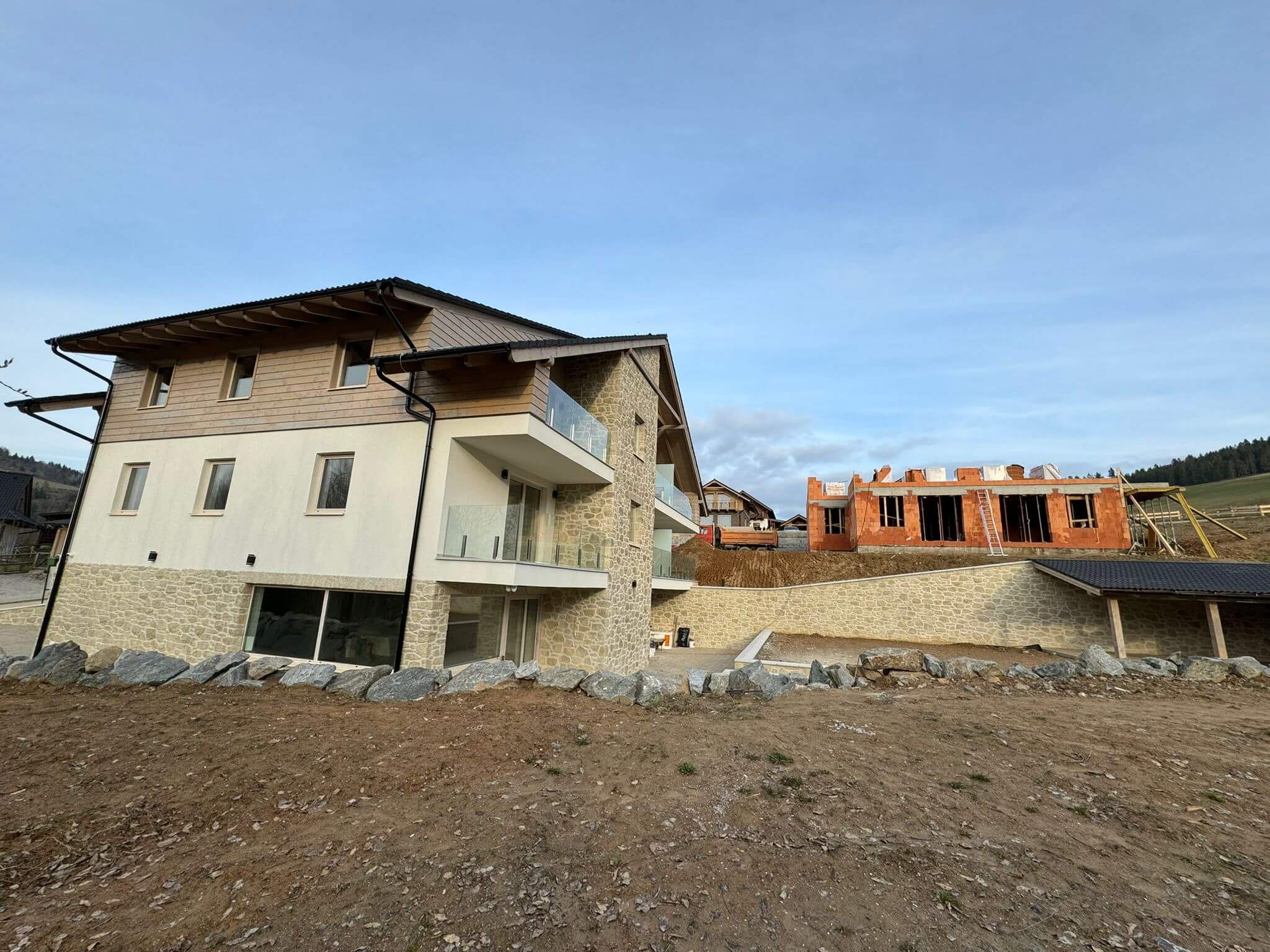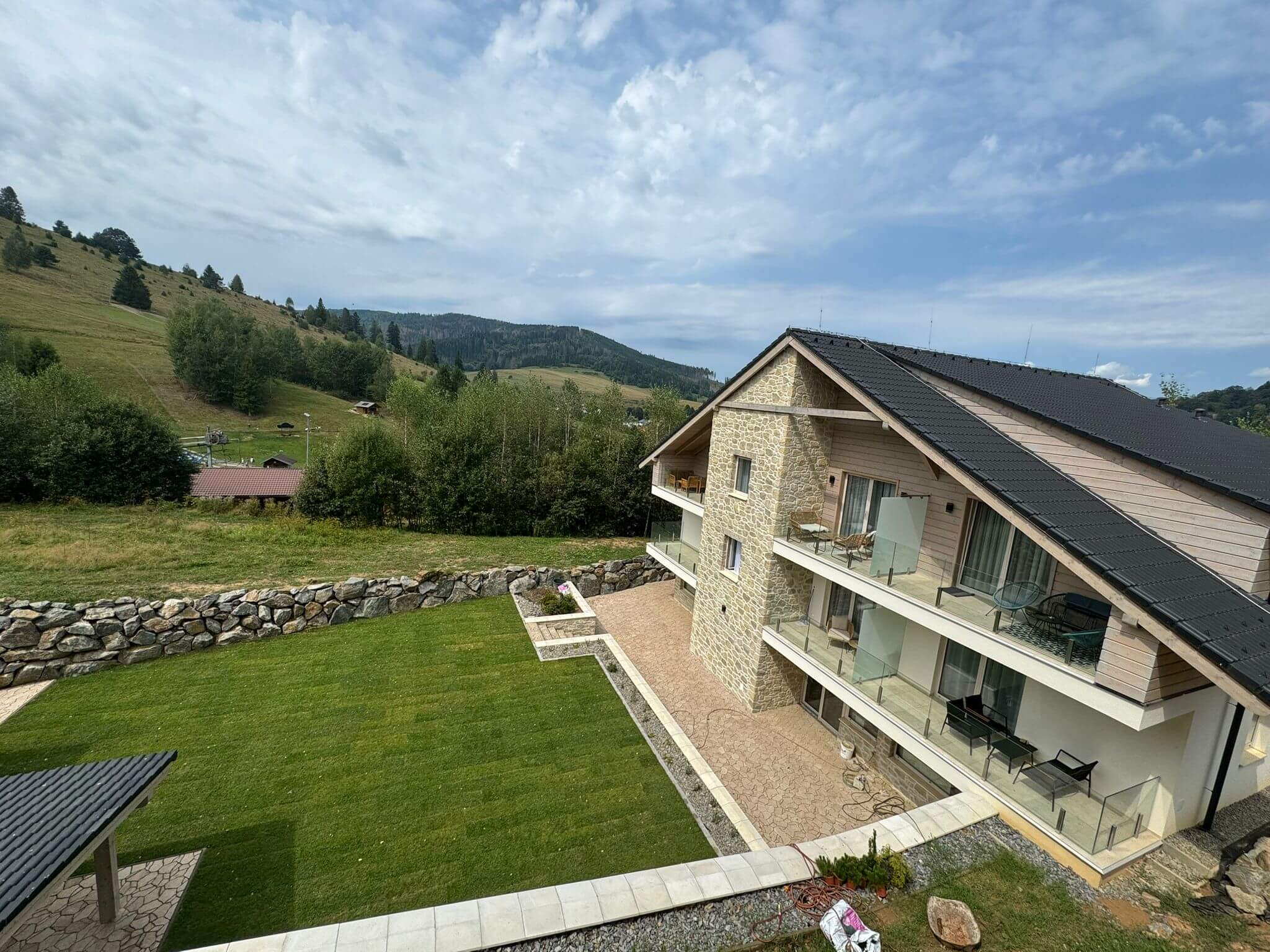 Finálne úpravy okolo apartmánového domu