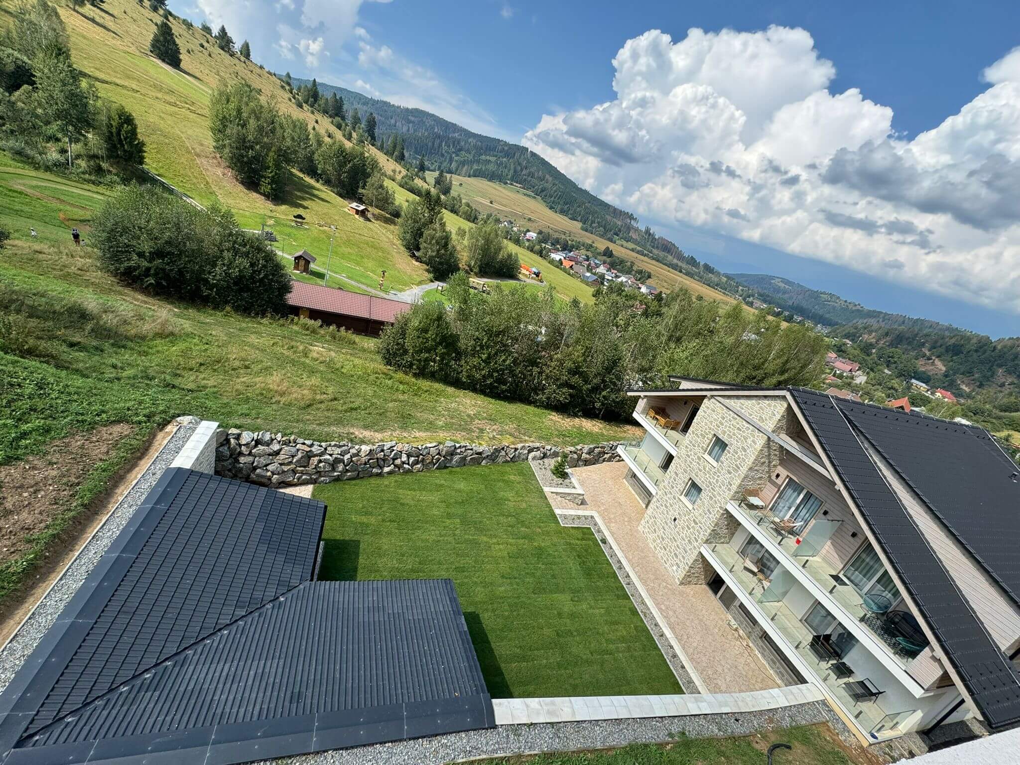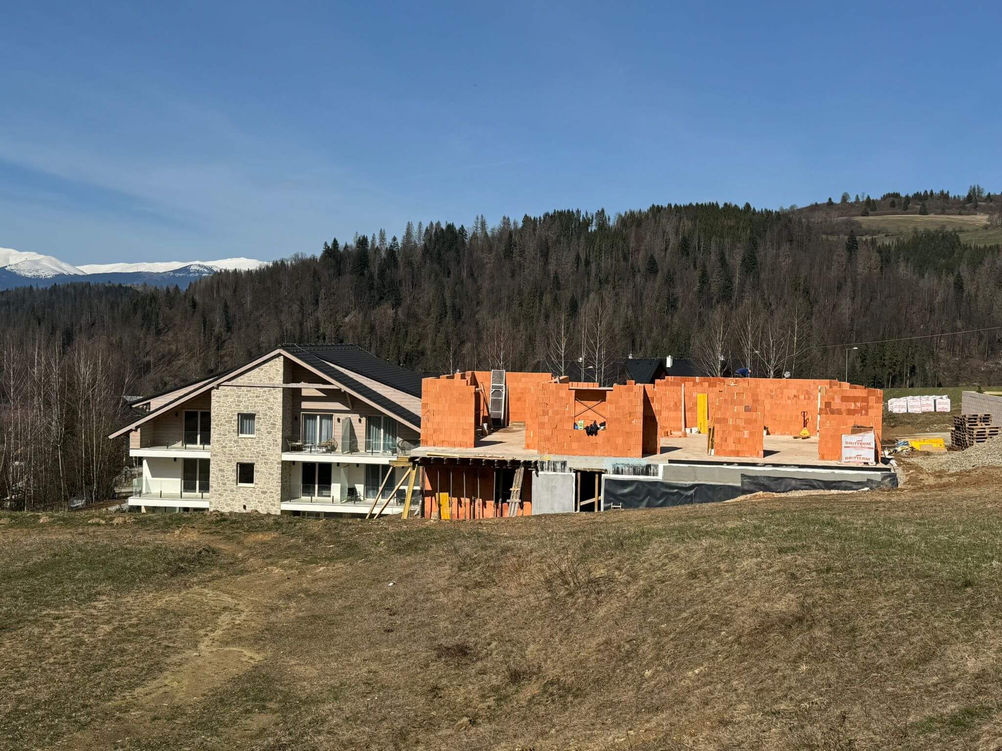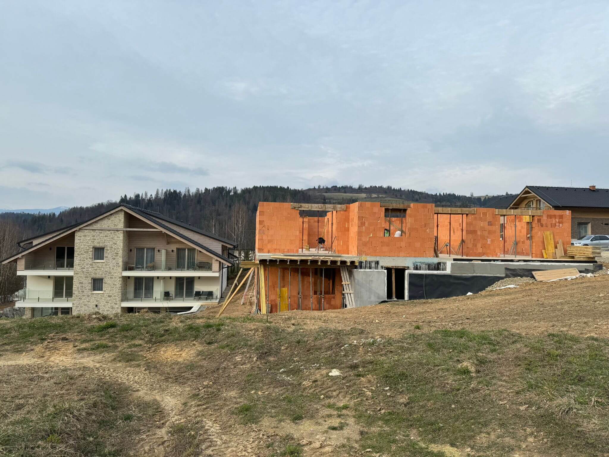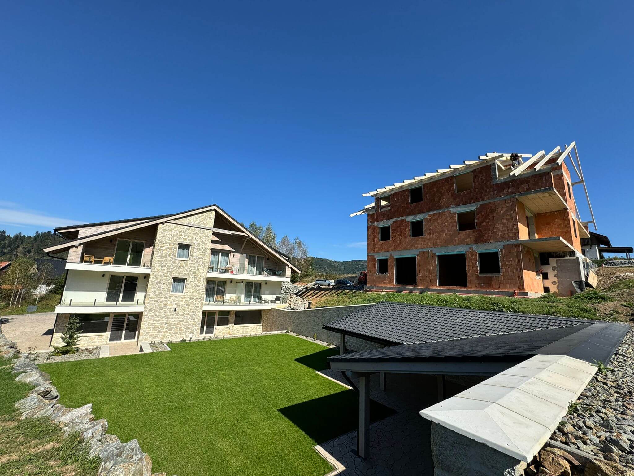 Finálne úpravy okolo apartmánového domu